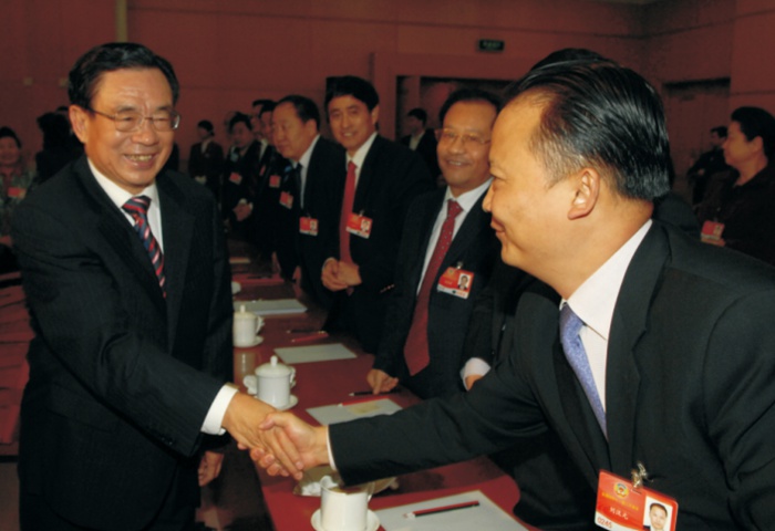 十七屆中共中央政治局常委、時任中紀委書記賀國強與通威集團董事局主席劉漢元先生親切握手