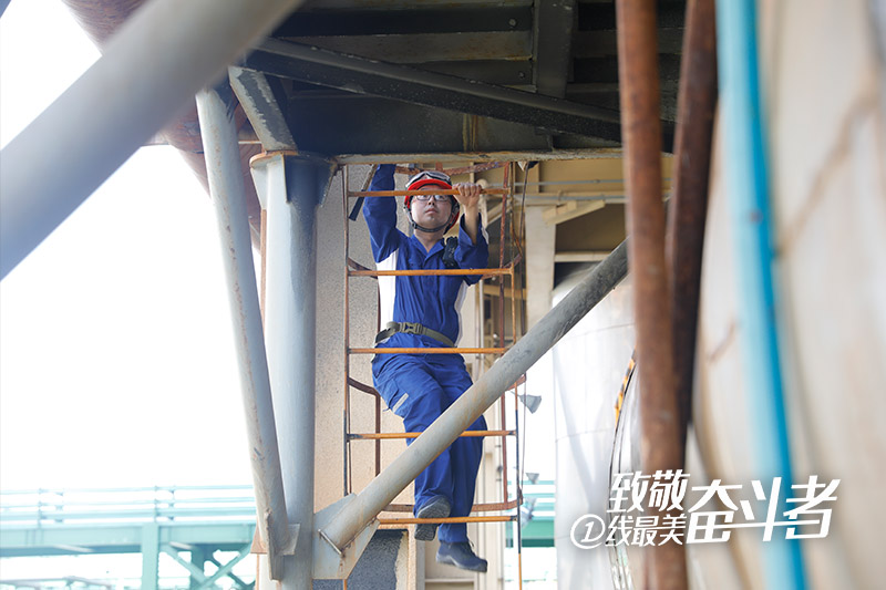 裝置區鋼架樓梯,幅度高、梯級間隔大。我頂著烈日,跟著爬了三層,已經有些氣喘吁吁。當陶勛貴告訴我,如果有裝置出現問題,他們背著三十斤應急處置裝備也必須在2分鐘從1層跑到5層時,我有些驚訝:“可能嗎?”