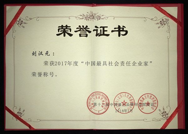 劉漢元主席榮獲“2017中國最具社會責任企業家”殊榮