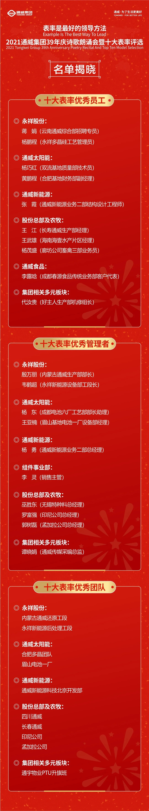 獻(xiàn)禮通威集團(tuán)39年華誕,通威十大表率名單隆重揭曉!