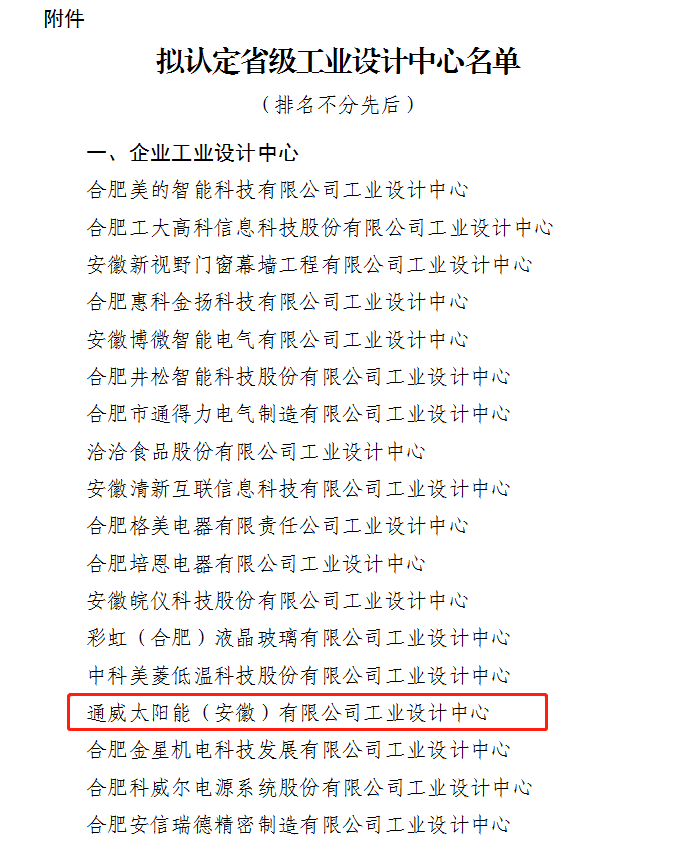 通威太陽能合肥基地榮獲“安徽省工業設計中心”榮譽稱號