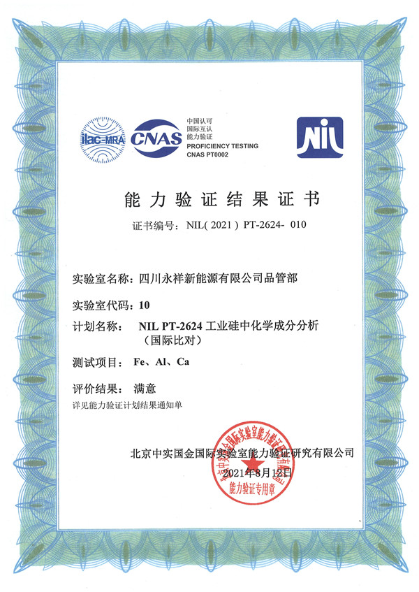 永祥新能源工業硅粉化學成分分析檢驗能力獲得國家認可