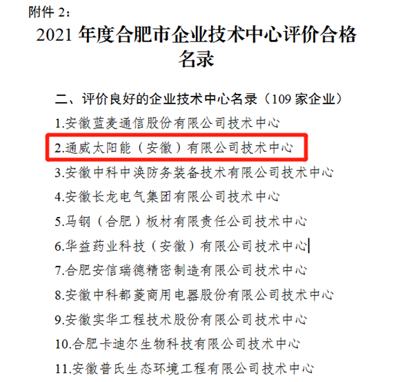 通威太陽能合肥基地順利通過“合肥市企業(yè)技術(shù)中心”年度評價