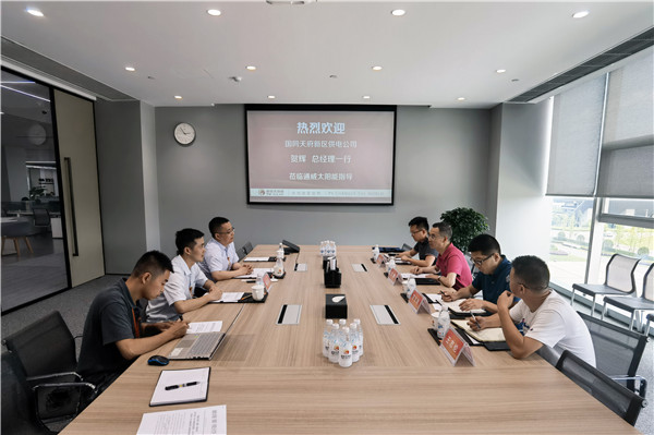 國網(wǎng)天府新區(qū)供電公司總經(jīng)理賀輝一行蒞臨通威太陽能參觀交流