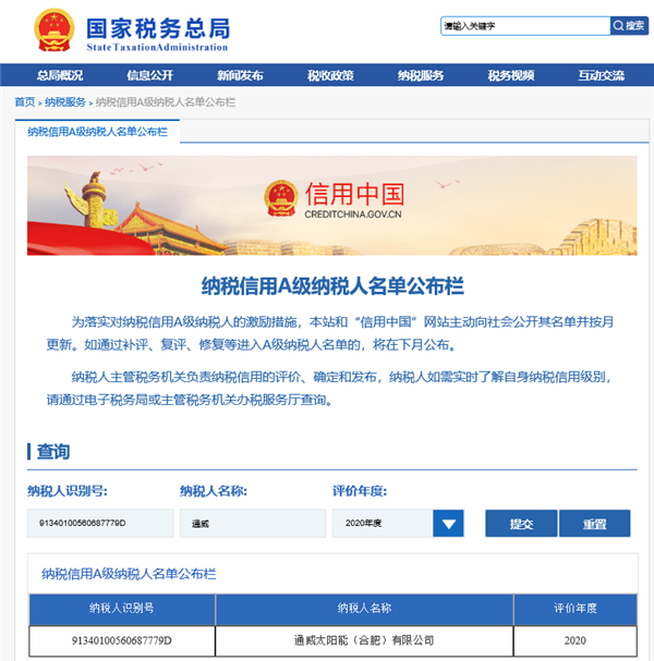 通威太陽能合肥基地連續五年被評為“A級納稅人”企業