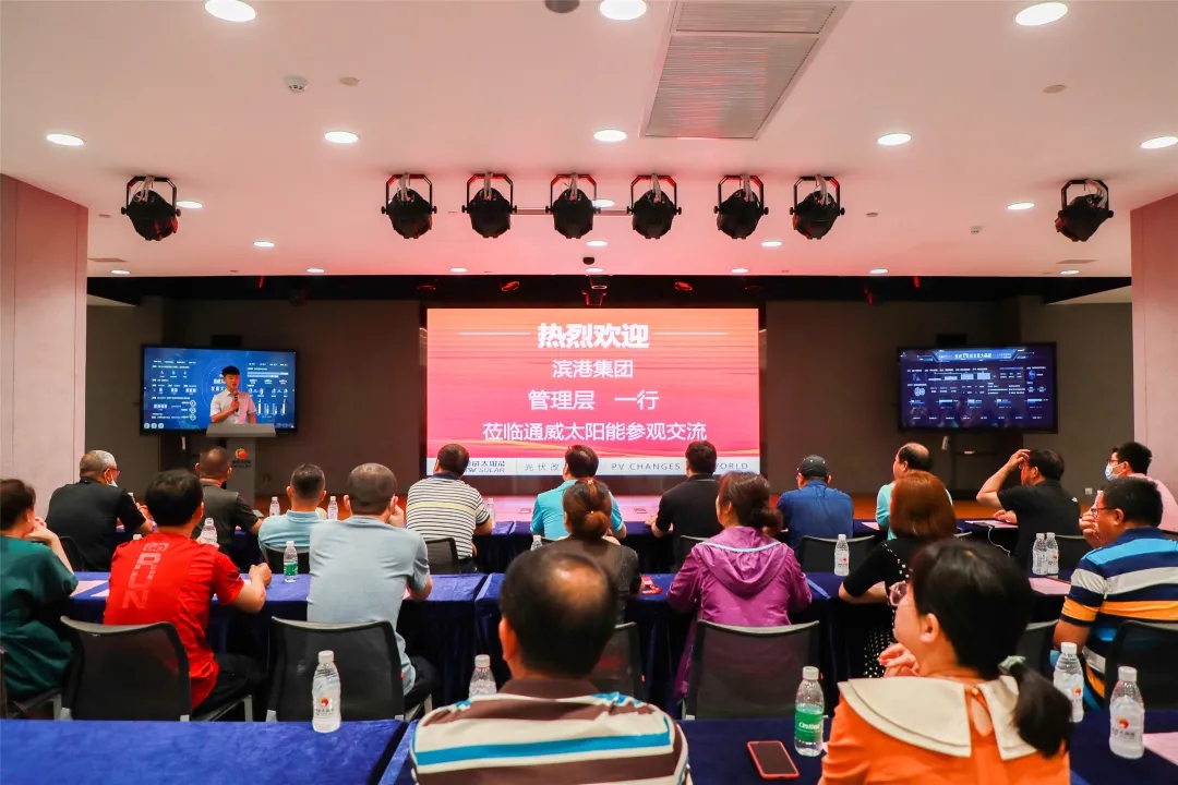 天津大港油田濱港石油科技集團交流團蒞臨通威太陽能參觀交流