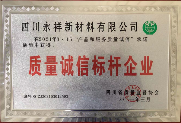 永祥新材料連續兩年榮獲“四川省質量誠信標桿企業”稱號