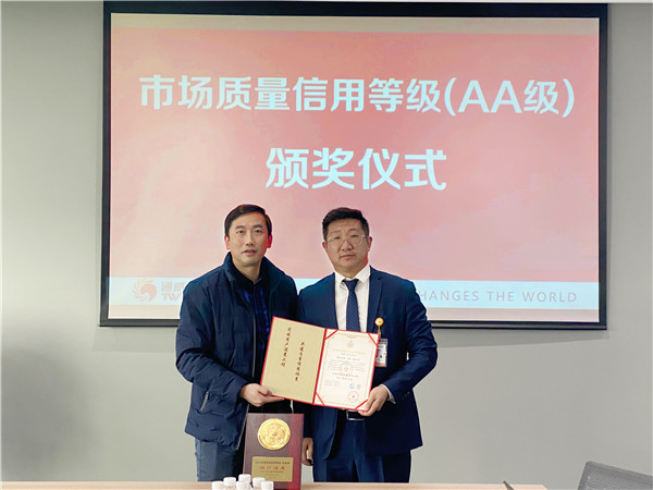通威太陽能成都公司榮獲全國市場質(zhì)量信用AA級用戶滿意企業(yè)