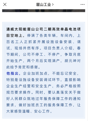 不停工、不停產!主流媒體聚焦通威太陽能“就地過年”