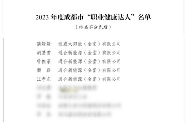 通威太陽能多名員工代表榮獲2023年度成都市“職業健康達人”榮譽稱號