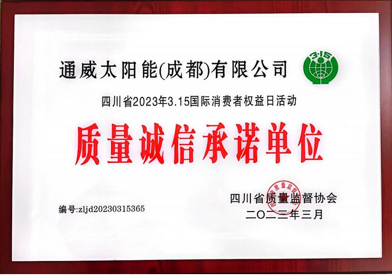 ? 通威太陽能雙流基地榮獲2023年“四川省質(zhì)量誠信承諾單位”稱號(hào)