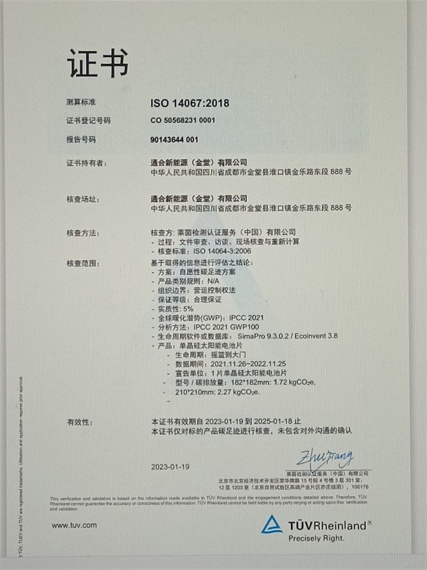 通合新能源電池項目順利通過萊茵產(chǎn)品碳足跡認(rèn)證