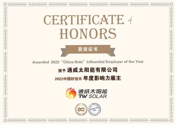 通威太陽能榮獲2022中國好伯樂“年度影響力雇主”獎