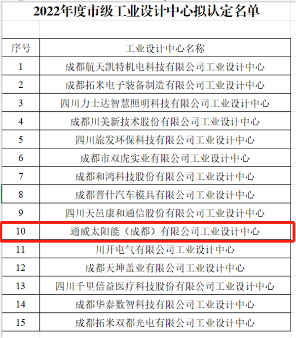 通威太陽能雙流基地榮獲“成都市工業設計中心”稱號