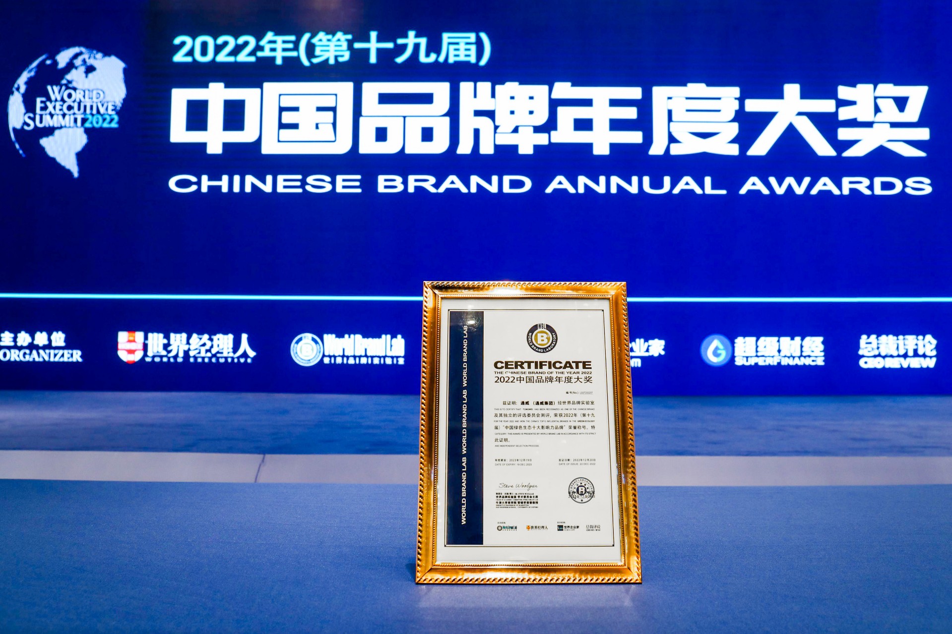 2022中國品牌年度大獎揭曉,通威榮獲“中國綠色生態十大影響力品牌”