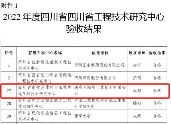 通威太陽能雙流基地成功通過“四川省工程技術研究中心”驗收