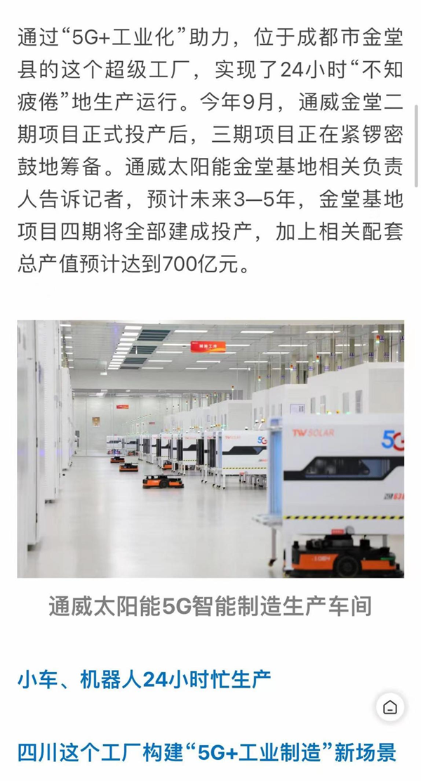 《封面新聞》聚焦通威太陽能金堂基地高質量發展
