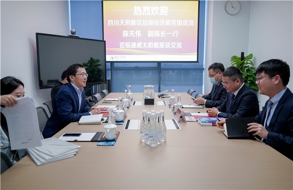 四川省天府新區(qū)總部經(jīng)濟(jì)局黨組成員、副局長陳先偉一行蒞臨通威太陽能金堂基地調(diào)研指導(dǎo)