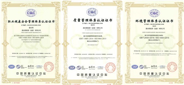 通合新能源獲得“三標一體”管理體系認證證書
