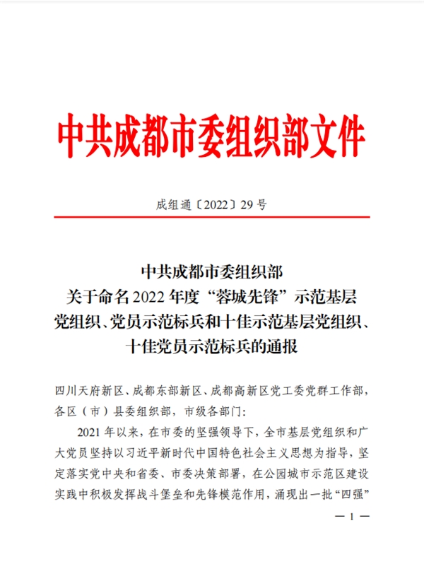 通威太陽能金堂基地黨支部榮獲2022 年度“蓉城先鋒”示范基層黨組織稱號
