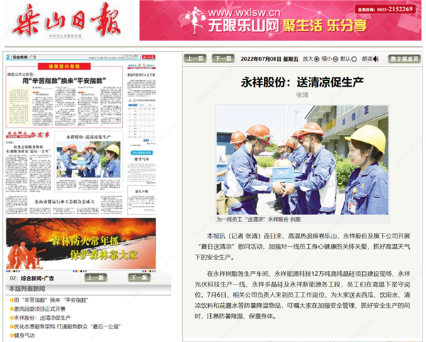 《樂山日報》等四家媒體聚焦永祥送清涼促生產活動
