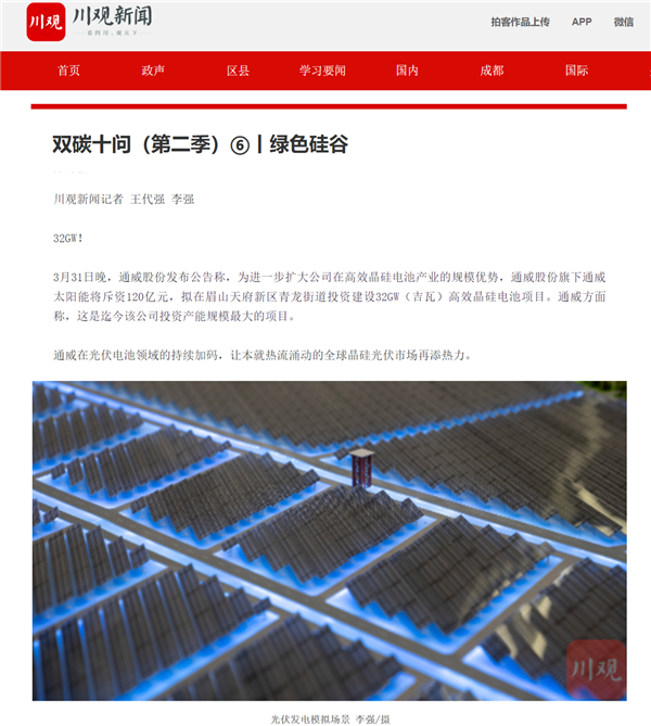 川觀新聞聚焦:通威太陽能助力“中國綠色硅谷”強勢崛起