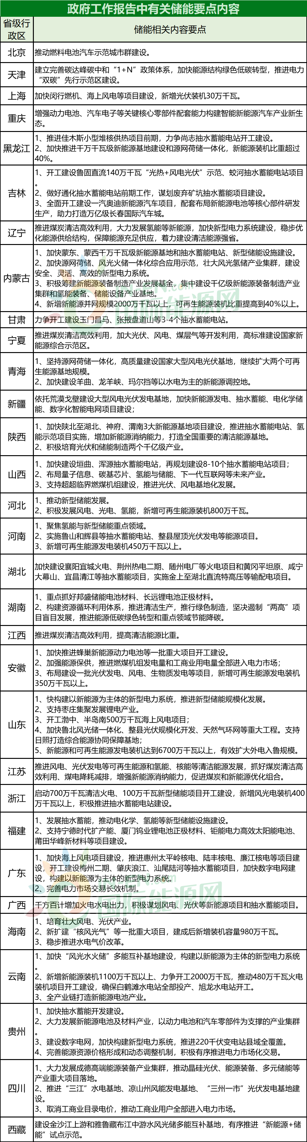 抽水蓄能成重點!31省政府工作報告提到儲能