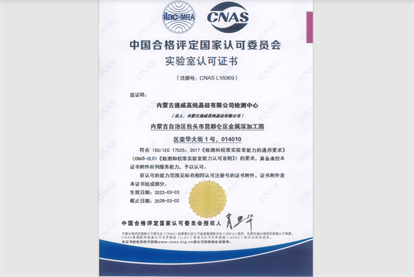 內蒙古通威檢測中心榮獲CNAS認可資質