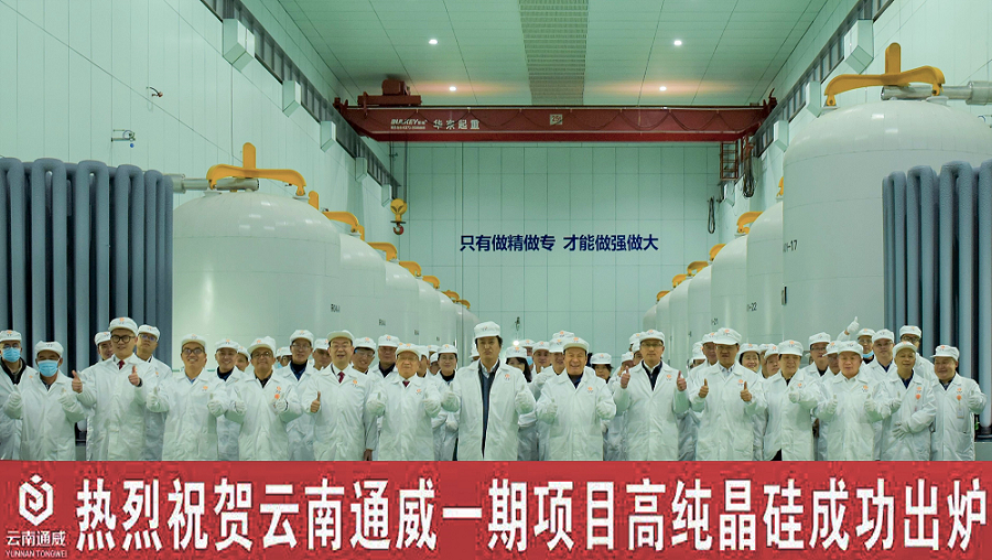 云南通威一期5萬噸高純晶硅項目首批高純晶硅正品成功出爐