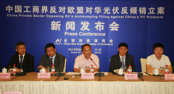 劉漢元主席出席中國(guó)工商界反對(duì)歐洲對(duì)華光伏反傾銷立案新聞發(fā)布會(huì)