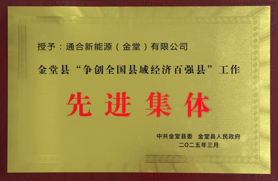 通合新能源(金堂)有限公司榮獲金堂縣“爭創(chuàng)全國縣域經(jīng)濟(jì)百強(qiáng)縣”工作先進(jìn)集體