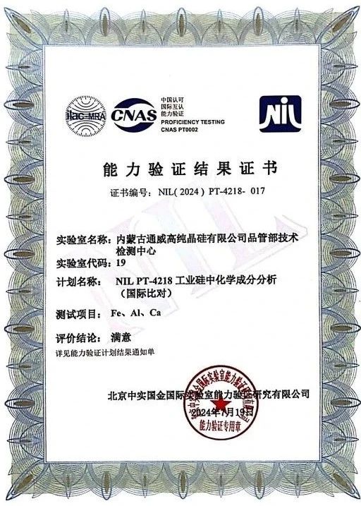內(nèi)蒙古通威工業(yè)硅化學(xué)成分分析獲得國(guó)家專業(yè)機(jī)構(gòu)認(rèn)可
