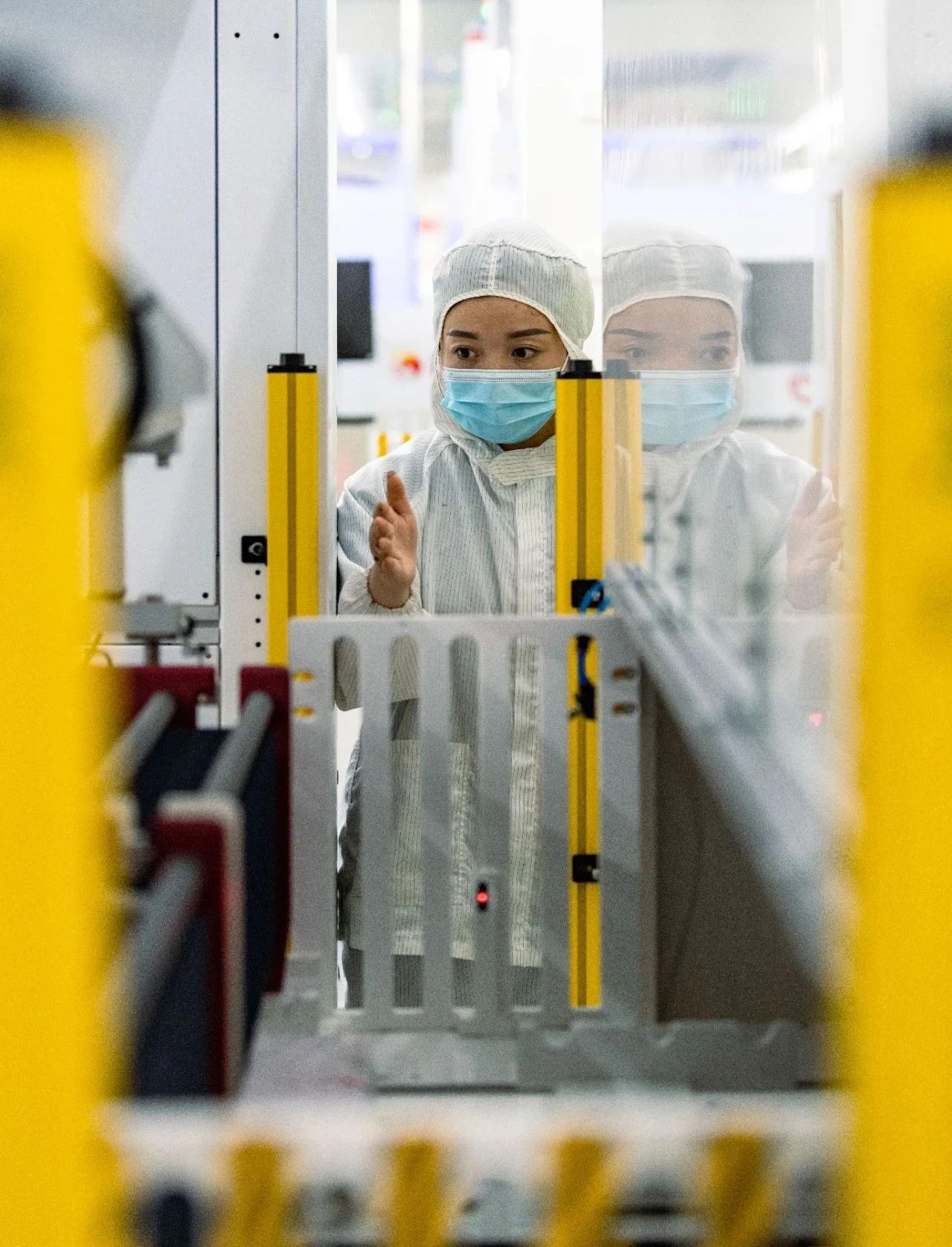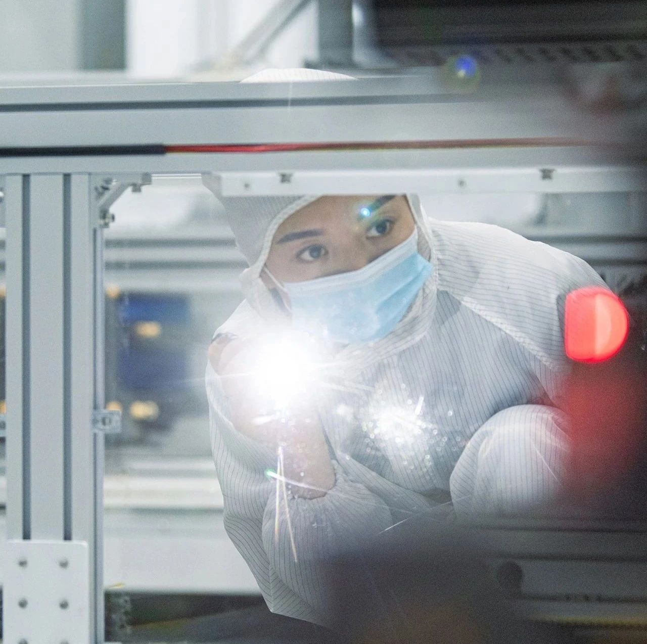穿上無塵服,戴好口罩,換上防靜電鞋
