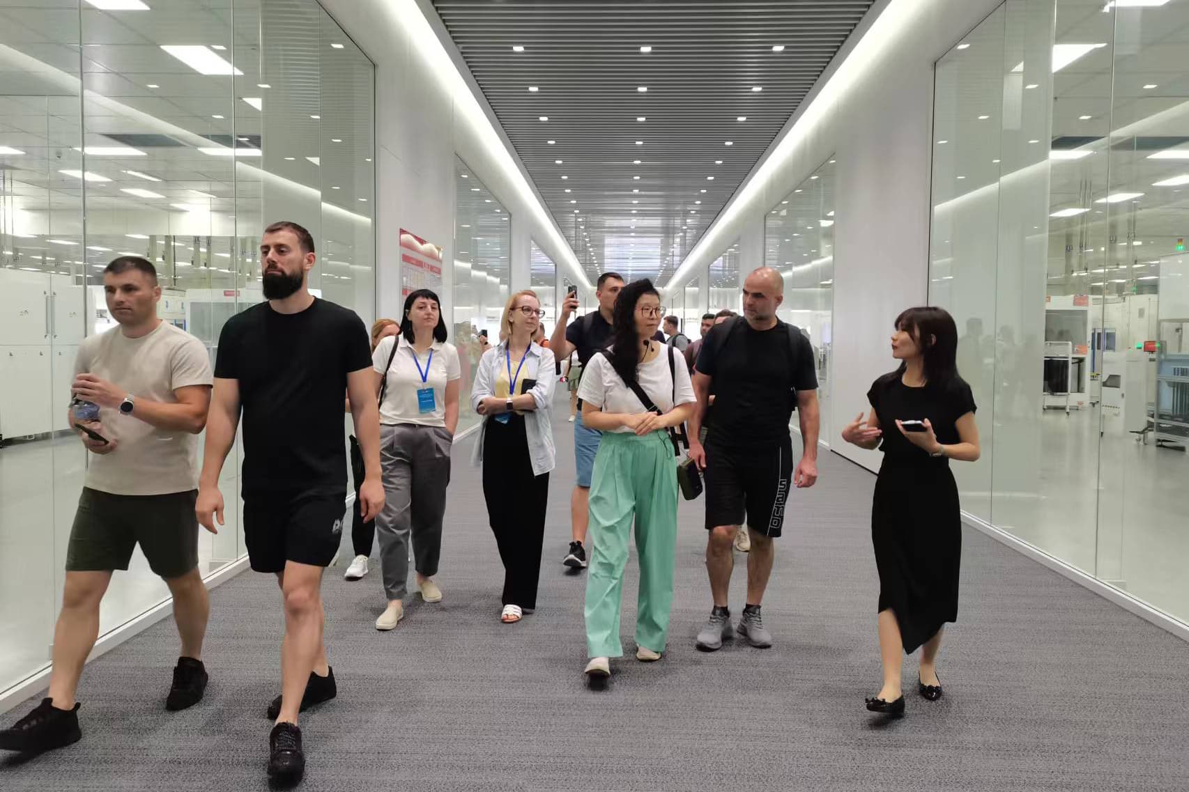 摩爾多瓦新能源建設研修班一行首先參觀了金堂基地展廳、5G智能制造車間。參觀過程中,全面了解了通威太陽能的發展歷程、綠色低碳發展理念和未來發展規劃。同時,詳細詢問了通威太陽能智能工廠實時運行,技術創新、智能制造等有關情況。