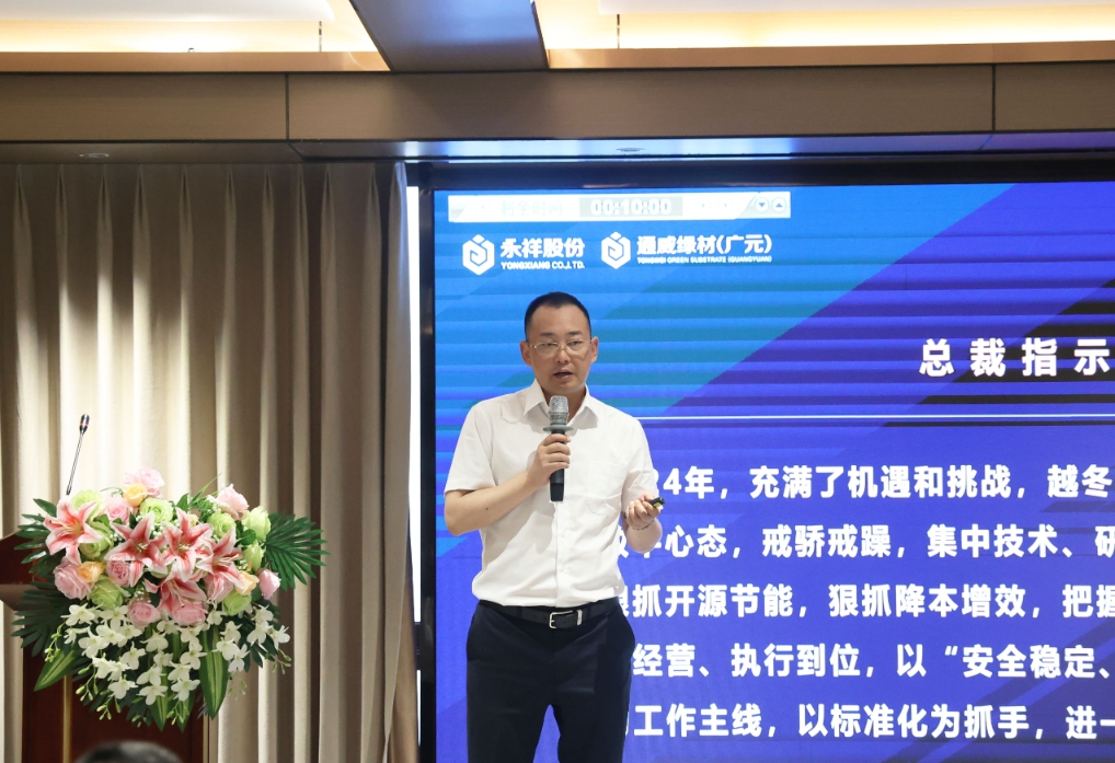 2024年上半年已告一段落,本次總結會的召開是通威綠材(廣元)新的起點,陳總號召全體廣通綠材人必須時刻保持緊迫感,瞄準目標、鉚足干勁,擼起袖子加油干,為創造社會價值、實現個人價值而堅定信心,賡續奮斗。