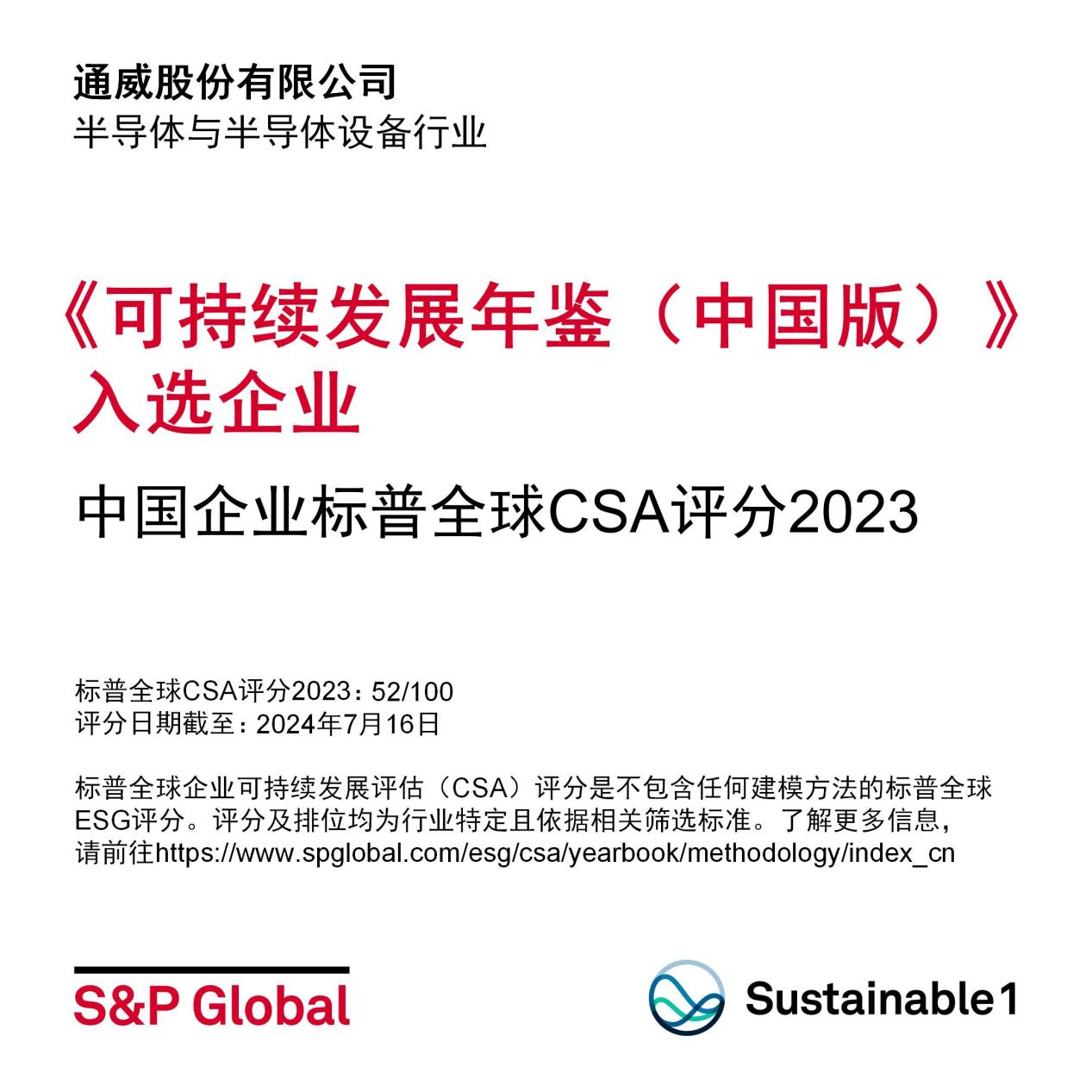 7月16日,標(biāo)普全球(S&P Global)發(fā)布《可持續(xù)發(fā)展年鑒(中國版)2024》,通威股份憑借在可持續(xù)發(fā)展領(lǐng)域的出色表現(xiàn),從超1700家被評估的中國企業(yè)中脫穎而出,以國內(nèi)半導(dǎo)體與半導(dǎo)體設(shè)備行業(yè)最高分,成為120余家入選年鑒的企業(yè)之一。