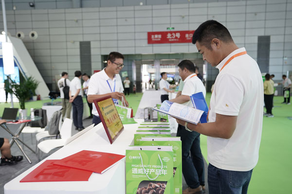 通威成立40余年始終堅定質量為根、用戶為本,現場,于參事蒞臨通威展位,通威農發傳播策劃部部長王洋攜工作人員向領導及觀眾介紹展示了通威產品、相關文化刊物,充分讓領導及觀眾了解到通威的“質量方針”、標準化等企業發展核心及亮點。通威始終站在養殖戶的角度出發,以“原料穩定、質量如一”的產品定位,向市場輸出優質產品,助力養殖效益最大化。