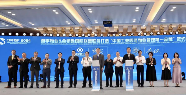 在與會嘉賓的見證下,通宇物業(yè)與金鑰匙國際聯(lián)盟簽訂聯(lián)合打造“中國工業(yè)園區(qū)物業(yè)管理第一品牌”合作協(xié)議。繼去年通宇物業(yè)獲金鑰匙國際聯(lián)盟授牌授勛授徽后,雙方再次強強聯(lián)合,旨在通過持續(xù)升級專業(yè)化、標準化、精細化的服務(wù)體系,創(chuàng)造高品質(zhì)的服務(wù)體驗,助推工業(yè)園區(qū)傳統(tǒng)物業(yè)向智能物業(yè)的全面轉(zhuǎn)型升級。