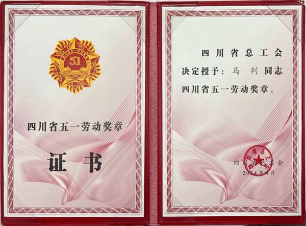 “四川省五一勞動獎?wù)隆弊C書