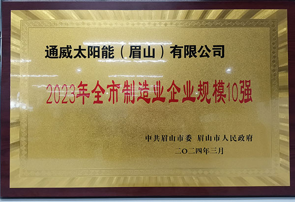 眉山公司榮獲“2023年眉山市制造業企業規模10強”稱號
