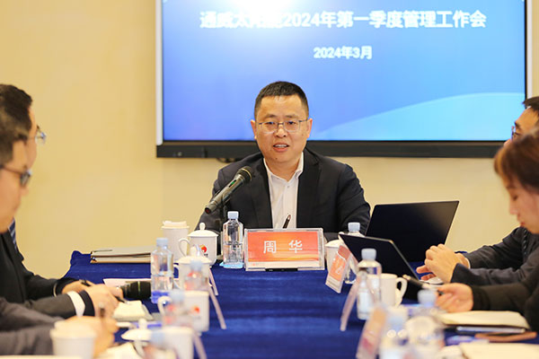 面對2024年市場不確定性及極具挑戰的經營目標,為進一步統一工作思路、規劃措施、迎戰市場,保障全年經營目標達成。3月8日,通威太陽能組織召開2024年第一季度管理工作會,通威太陽能總經理周華攜全體高管及管理平臺部門負責人出席會議。
