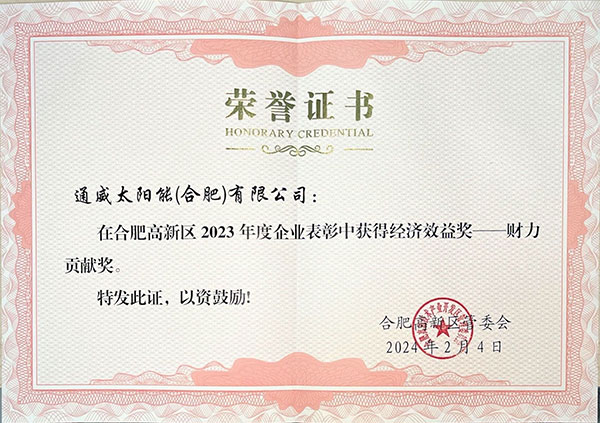 此次獲評,充分表明通威太陽能(合肥)有限公司是推動合肥經濟社會發展、壯大高新區財力的中堅力量和有力支撐。此次資金獎勵也是激勵公司全體員工凝心聚力再創佳績的助推器。