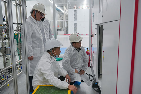 調研現場,朱常委一行深入金堂基地5G智能制造、高潔凈度生產車間,近距離了解并詳細聽取金堂基地的技改規劃與進度。朱常委對通威太陽能技術水平、管理模式給予充分肯定,并仔細詢問企業目前在各方面遇到的困難。他表示,政府將大力支持企業技改并提供多方保障,希望通威太陽能按時按期完成技改工作,持續助力金堂縣域經濟實現高質量發展。
