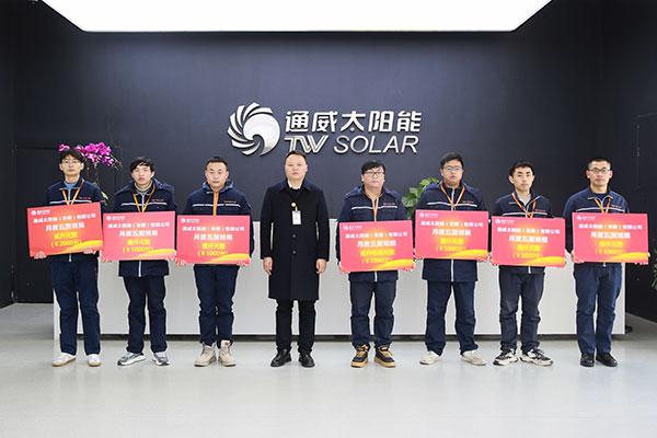 本次獲獎五型班組是在通威太陽能各基地近500個班組中,通過班組效益評比考核、部門級月度五型班組評比考核評出。最終,各基地共計45個優(yōu)秀班組獲得12月月度五型班組殊榮,發(fā)放獎金達(dá)6萬余元。