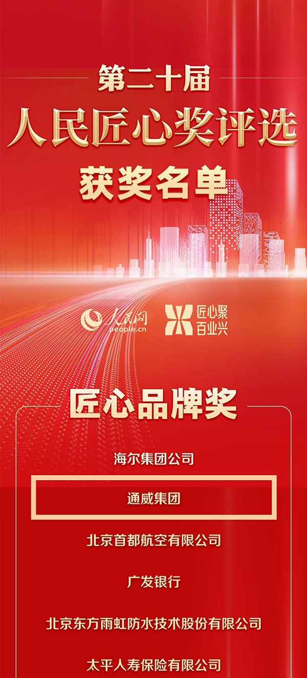 2023年12月29日,由人民網主辦的“2023年人民財經論壇”在北京舉行,本次論壇以“以高質量發展推進中國式現代化”為主題,重磅揭曉了“第二十屆人民匠心獎”獲獎名單,通威集團榮膺“匠心品牌獎”。