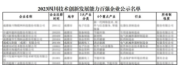 通威太陽能雙流基地榮列“2023年四川企業技術創新發展能力100強”名單