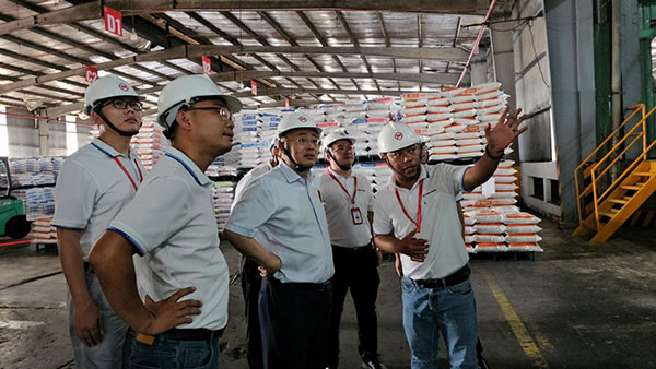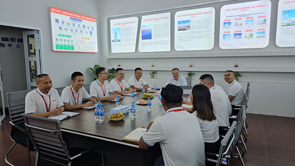 越南天邦公司總經(jīng)理劉彥、生產(chǎn)部經(jīng)理王瑞平以及相關(guān)部門經(jīng)理陪同郭總前往公司廠區(qū)和車間視察工作。王經(jīng)理向郭總說明了目前越南天邦車間運(yùn)行情況,