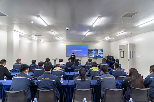 為持續(xù)打造通威太陽能高質(zhì)量五型班組,提升一線班組“技能型、效益型、管理型、創(chuàng)新型、和諧型”的建設(shè)能力,同時(shí)通過樹立標(biāo)桿,營造班組間“比、學(xué)、趕、幫、超”的文化氛圍。11月22日,通威太陽能各基地連線開展2023年度最佳五型班組評比活動,通威太陽能總經(jīng)理助理陳君,通合新能源總經(jīng)理助理羅曉云、郭寬新,通威太陽能金堂基地總經(jīng)理助理龐三鳳、彭山基地暨安徽公司總經(jīng)理助理顧峰、眉山基地總經(jīng)理助理姚騫、雙流基地總經(jīng)理助理徐濤攜各基地相關(guān)廠部負(fù)責(zé)人、人力資源負(fù)責(zé)人出席活動。