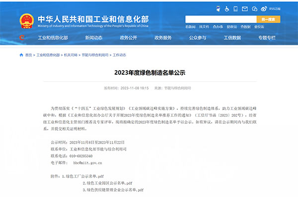 118日,中華人民共和國工業和信息化部發布了《2023年度綠色制造名單公示》(公示期為14日),通威太陽能安徽公司成功入選“2023年度國家級綠色工廠”。