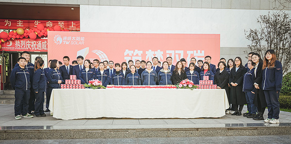 2023年,通威太陽能員工規模近20000人。從2013年的87人,到如今擁有近20000人的大家庭,通威太陽能始終以奮斗者為本,關愛每一位員工的成長和付出,凝練出“享受奮斗、擁抱危機、防危重安”的核心價值觀,鼓勵每一位員工勇敢去改變、去創造、去成長,員工成長與公司發展實現雙向賦能。